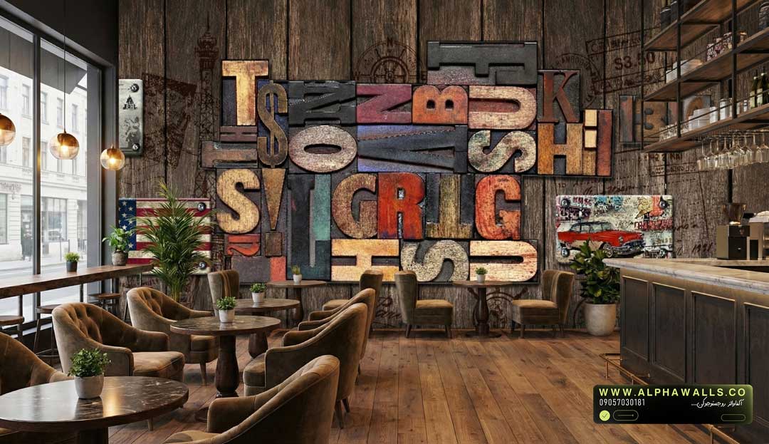 پوستر دیواری تایپوگرافی صنعتی | طراحی حروف برجسته با حس کافهای مدرن