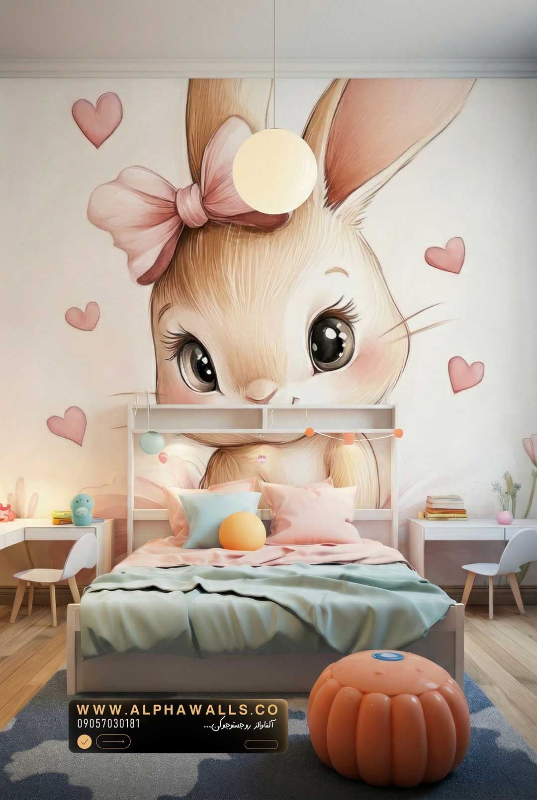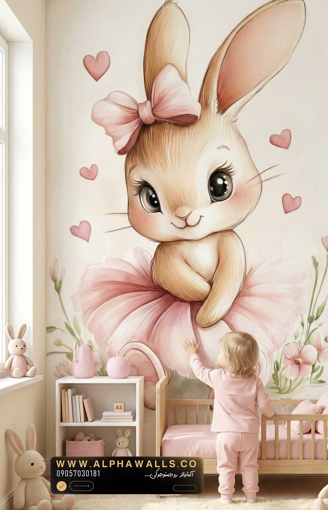 این پوستر دیواری کودکانه با تصویر خرگوش بالرین با دامن تور صورتی، فضایی بسیار لطیف، احساسی و امن برای کودک ایجاد می‌کند. حالت چهره مهربان خرگوش، رنگ‌های پاستلی و جزئیات گل‌ها و قلب‌ها، این طرح را به انتخابی ایده‌آل برای اتاق نوزاد و کودک دخترانه تبدیل کرده است؛ مخصوصاً برای والدینی که به دنبال آرامش، ظرافت و حس مراقبت در فضای اتاق هستند.