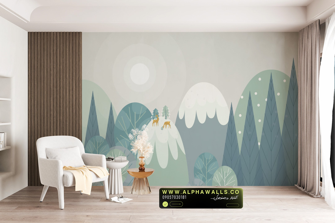 این پوستر دیواری کودک با ترکیب کوههای نرم، درختان جنگلی و حیوانات کوچک در فضایی مهآلود و آرام طراحی شده است. سبک تصویرسازی مینیمال و رنگهای سردِ کنترلشده، محیطی امن و بدون شلوغی بصری ایجاد میکند که برای رشد ذهنی کودک بسیار ایدهآل است. این طرح نه هیجانی است و نه خنثی؛ دقیقاً در نقطه تعادل روانی قرار دارد.