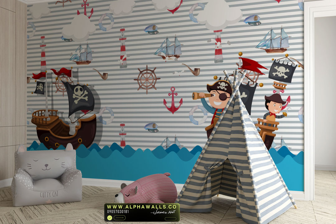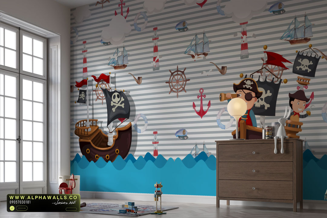 این پوستر دیواری کودکانه با تم دزدان دریایی، کشتیهای ماجراجو، فانوس دریایی و المانهای دریایی طراحی شده است. فضای کلی طرح شاد، داستانمحور و پرتحرک بوده و کودک را وارد دنیای سفر، کشف گنج و ماجراجویی میکند؛ بدون ایجاد حس ترس یا خشونت.