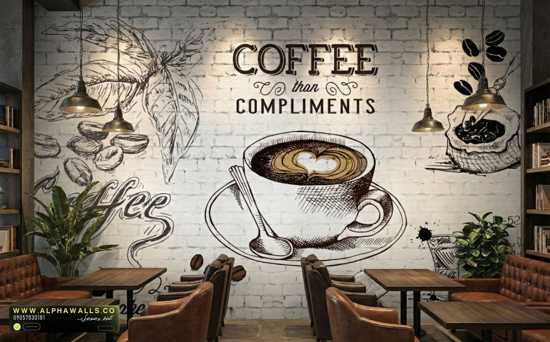 ترکیب فنجان قهوه با طرح قلب، دانههای قهوه، نوشتههای هنری و بافت دیوار آجری، حس اصالت و خاطرهانگیزی را زنده میکند و فضا را به محیطی دلنشین برای گفتوگو و ماندن تبدیل میسازد.