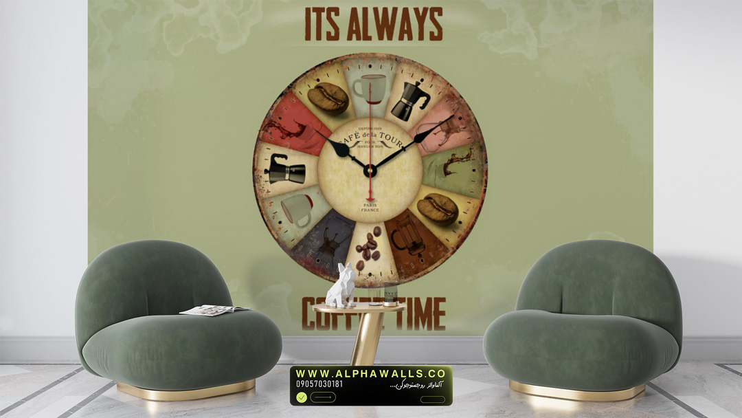 این پوستر دیواری با محوریت کلیت طراحی مفهومی زمان و قهوه شکل گرفته است؛ جایی که ساعت، نماد توقف لحظهها و قهوه، نماد آرامش و مکث در زندگی روزمره است. ترکیب ساعت کلاسیک با تصاویر ابزار و دانههای قهوه، حس نوستالژی، صمیمیت و لذت از لحظه حال را بهخوبی به فضا منتقل میکند.