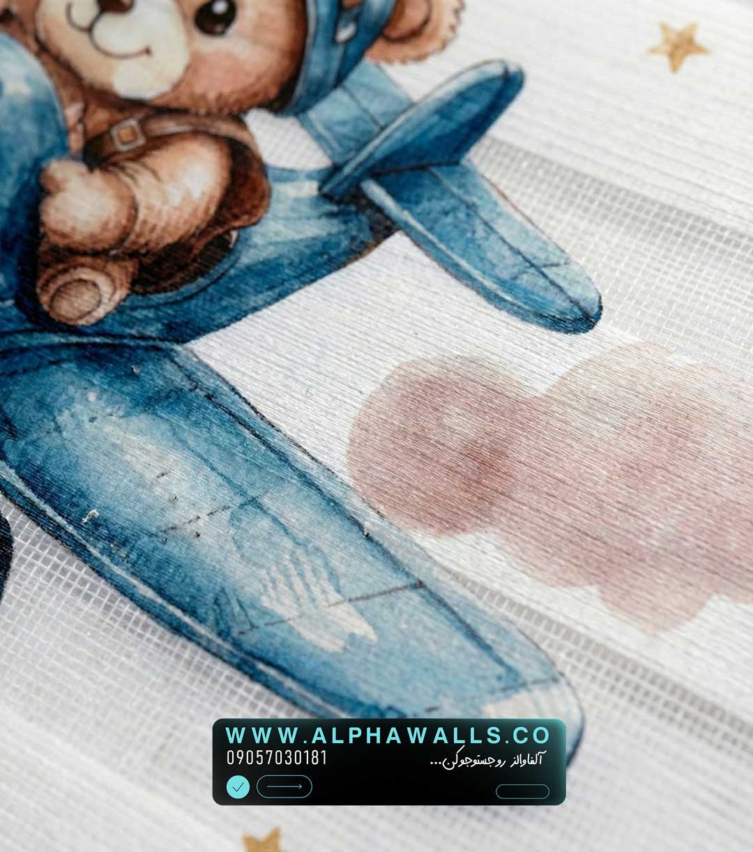 پرده زبرا اتاق کودک طرح خلبان کوچولو با تم آسمانی ملایم