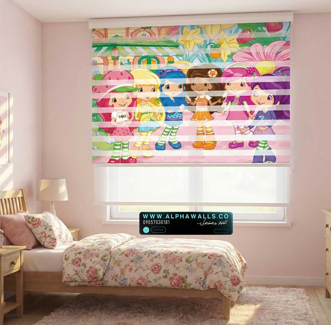 پرده زبرا اتاق کودک طرح دختران آبنباتی با رنگهای شاد پاستلی