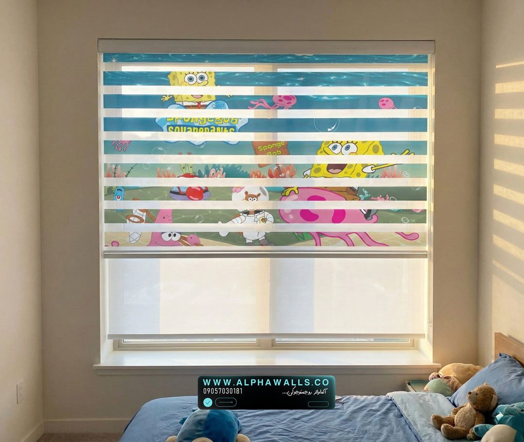 پرده زبرا کودکانه با طرح شخصیت کارتونی باب اسفنجی محبوب در دنیای زیر دریا، فضایی شاد، پرانرژی و سرگرمکننده برای اتاق کودک ایجاد میکند. ترکیب رنگهای زرد، آبی و سبز دریایی به افزایش حس نشاط، شوخطبعی و روحیه مثبت در کودک کمک کرده و برای کودکان پرتحرک و بازیگوش بسیار مناسب است. ساختار دولایه زبرا امکان کنترل نور طبیعی را فراهم کرده و در کنار ظاهر شاد، تعادل مناسبی بین روشنایی و آرامش محیط ایجاد میکند.