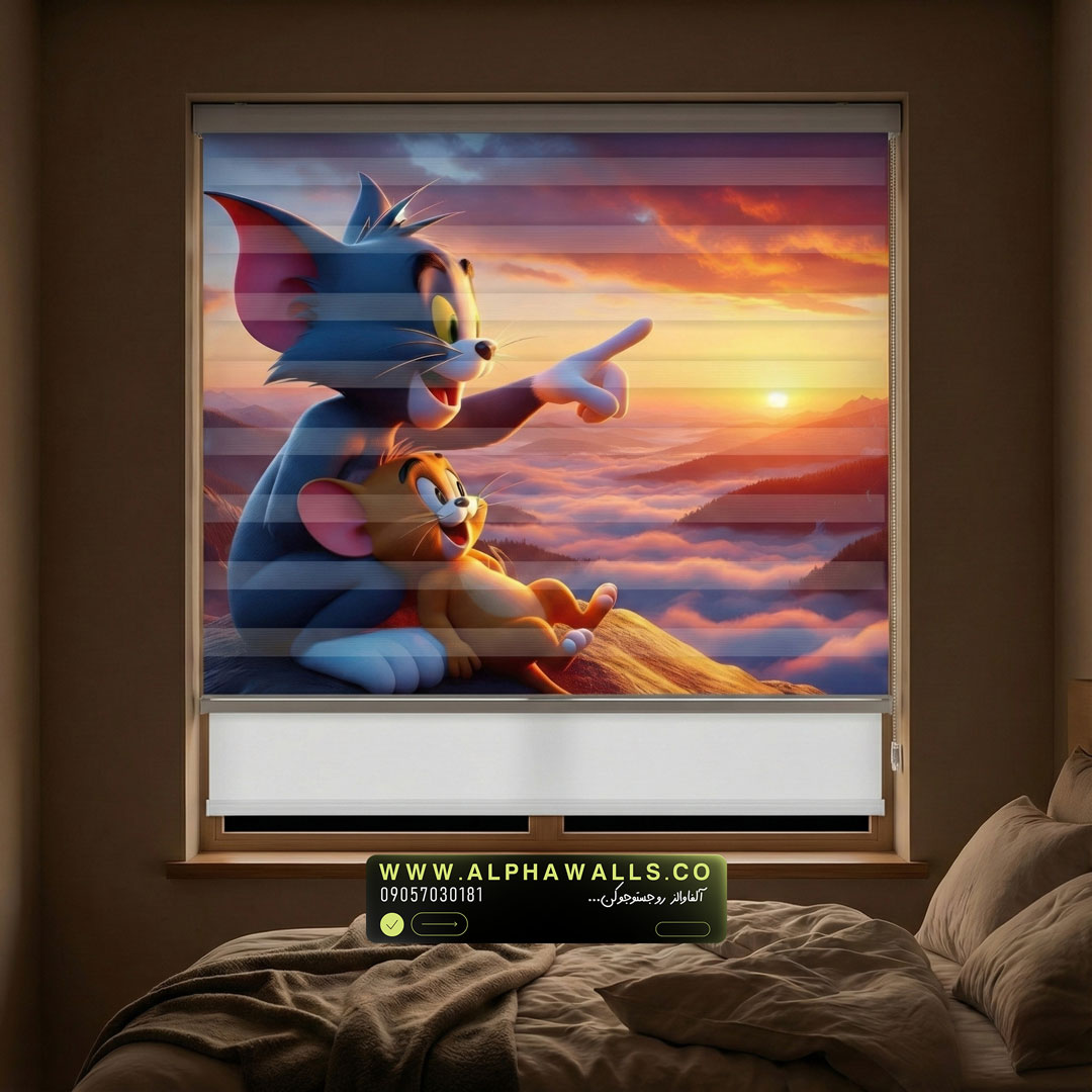 پرده زبرا اتاق کودک طرح تام و جری در غروب خیالانگیز