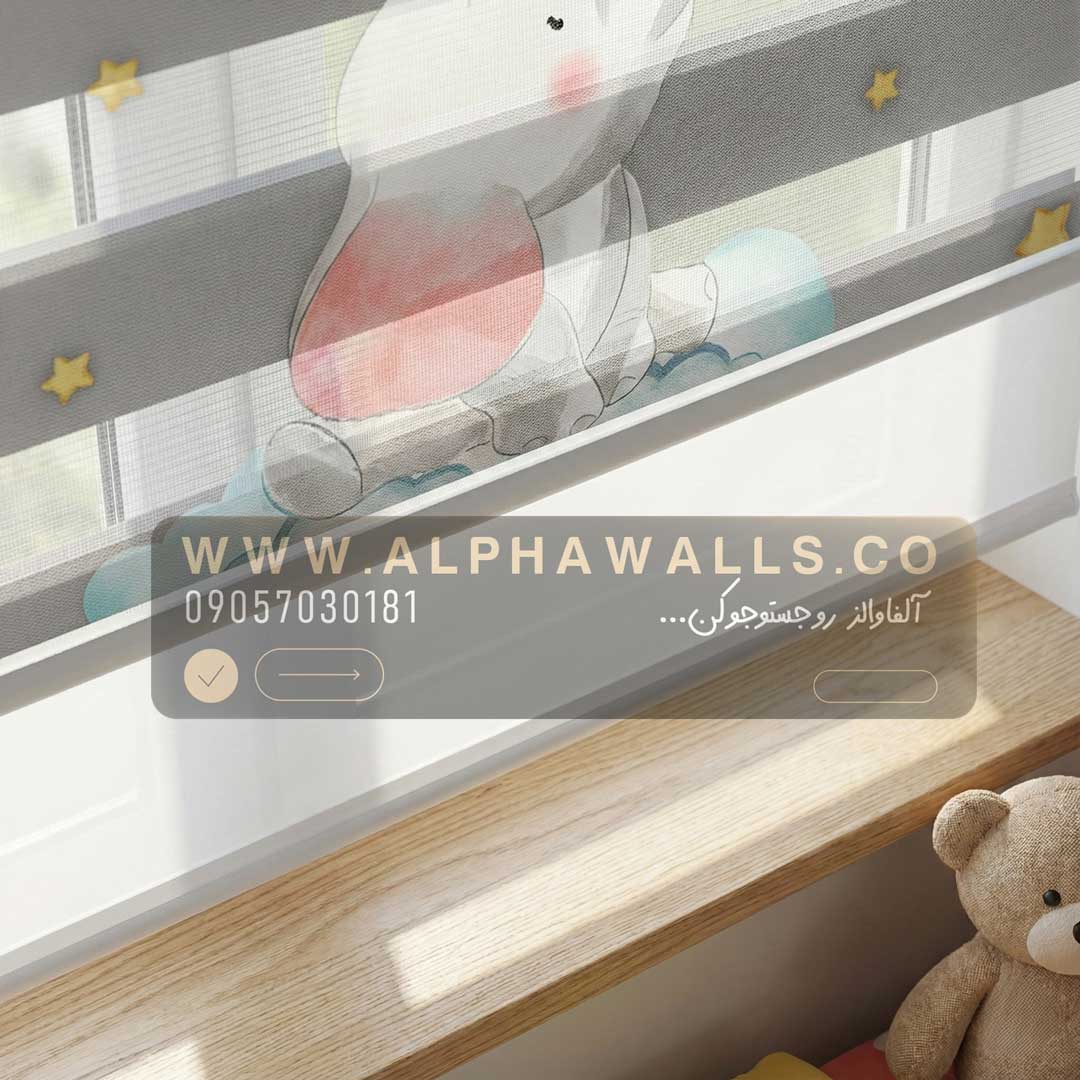پرده زبرا اتاق کودک طرح فیل کوچولو روی ابر