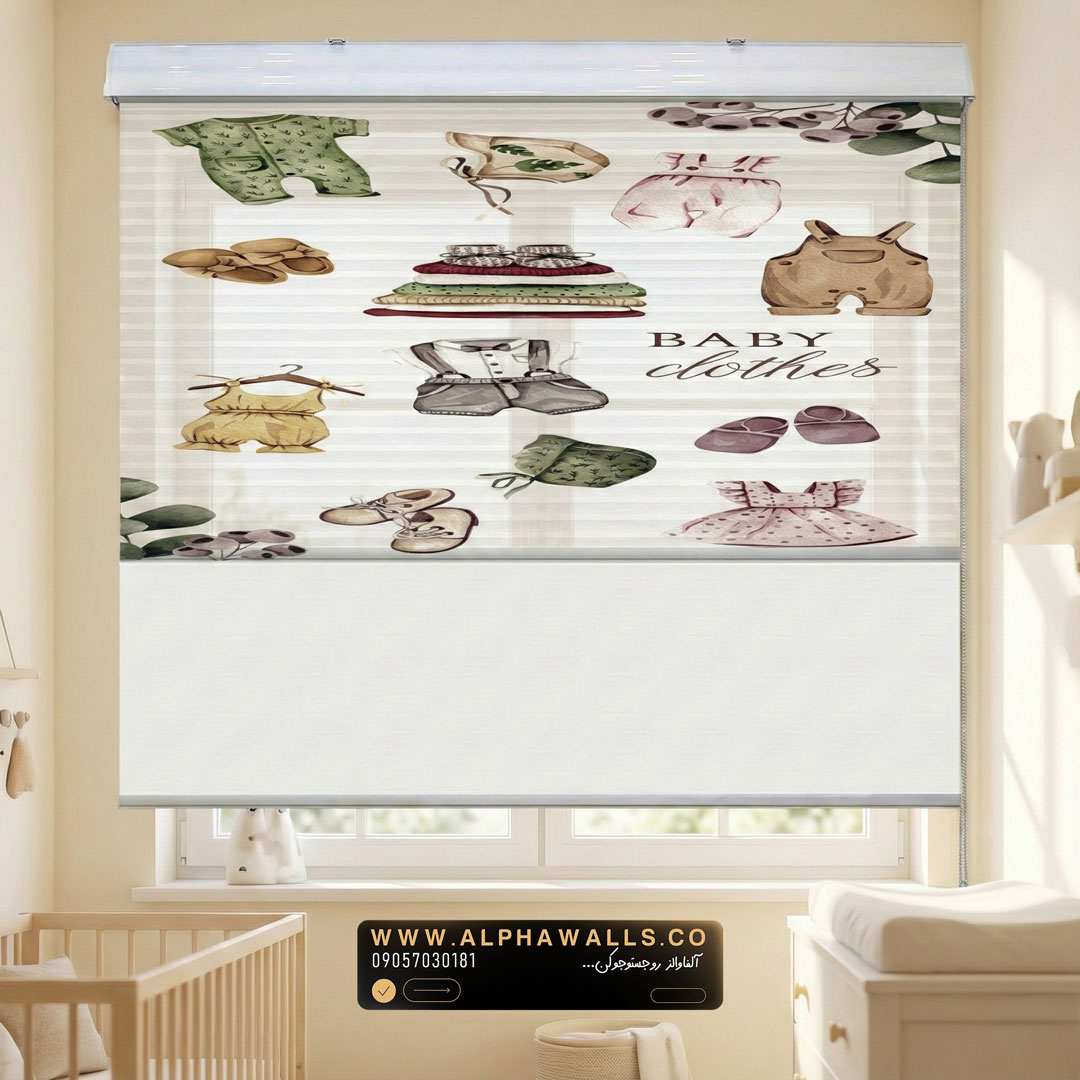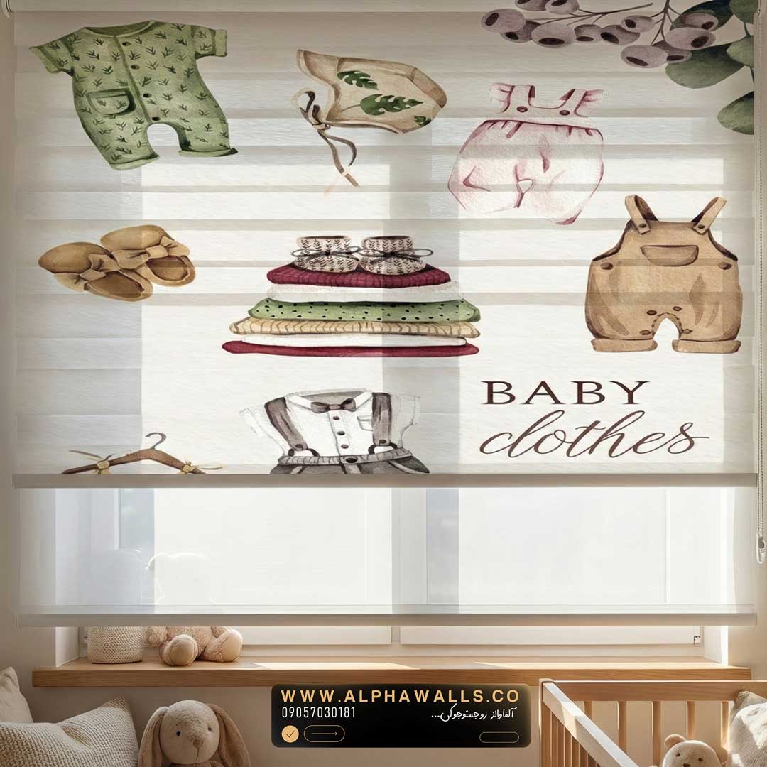 پرده زبرا طرح لباس نوزادی (Baby Clothes) با تصویر لباسهای کوچک، کفشها و جزئیات لطیف کودکانه، انتخابی ایدهآل برای اتاق نوزاد و فضای سیسمونی است. این طرح فاقد کاراکترهای شلوغ یا رنگهای تند بوده و دقیقاً بر پایهی آرامش بصری، حس پاکی و نظم طراحی شده است؛ موضوعی که برای ماههای ابتدایی رشد نوزاد اهمیت بالایی دارد.