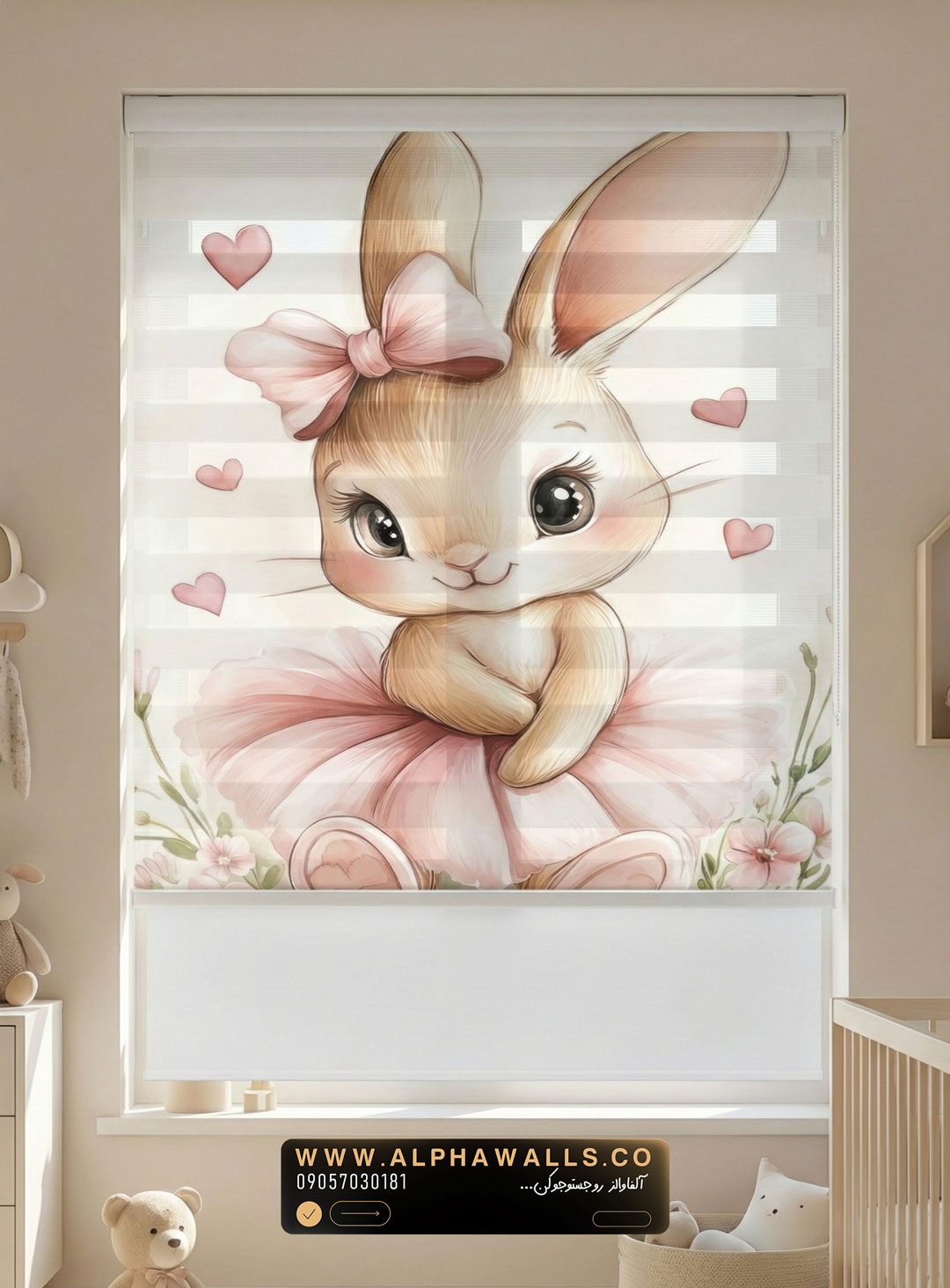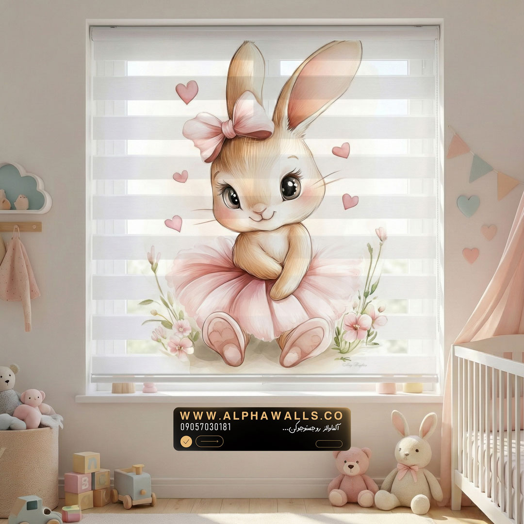 پرده زبرا اتاق کودک طرح خرگوش بالرین صورتی