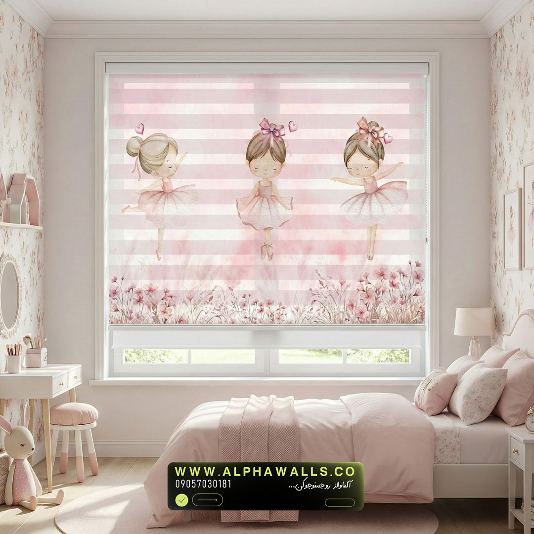 پرده زبرا کودک طرح بالرین صورتی با تصویر سه دختر بالرین در حال رقص، فضایی لطیف، رویایی و آرام را برای اتاق کودک ایجاد میکند. این طرح با سبک آبرنگی و جزئیات ملایم، بدون شلوغی بصری، کاملاً مناسب اتاق دخترانه، سیسمونی و فضاهای خواب کودک طراحی شده است.