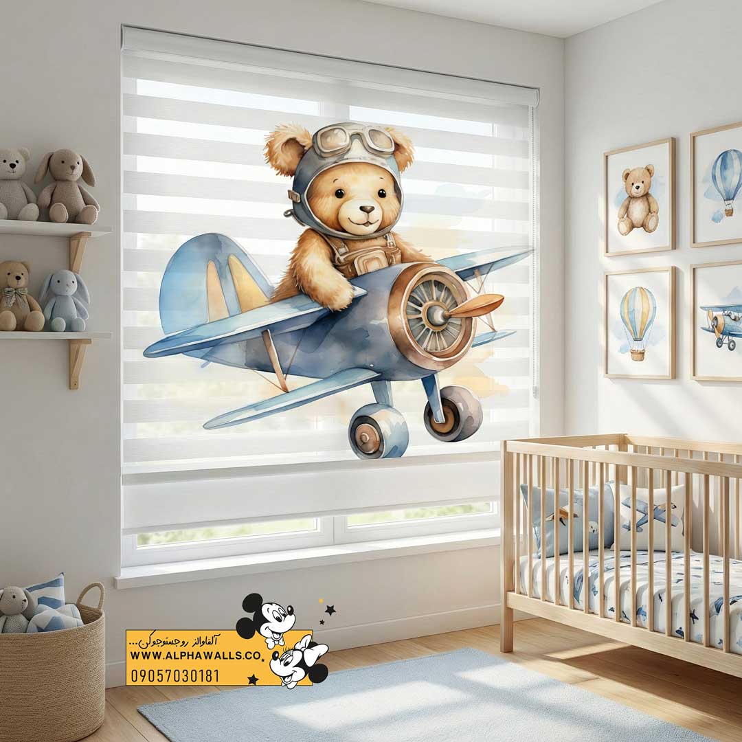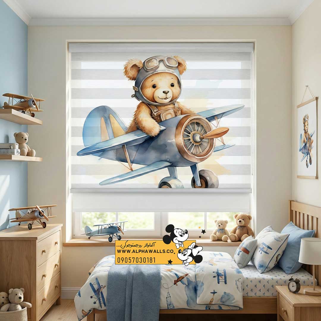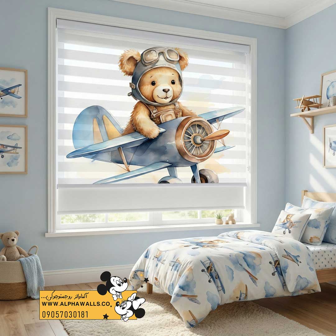 پرده زبرا کودک طرح خرس خلبان | تقویت جسارت، خیالپردازی و اعتمادبهنفس در اتاق کودک