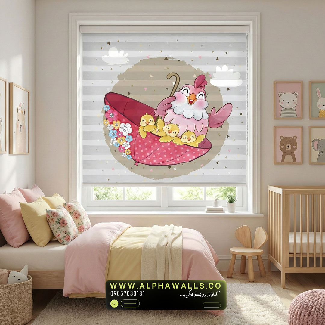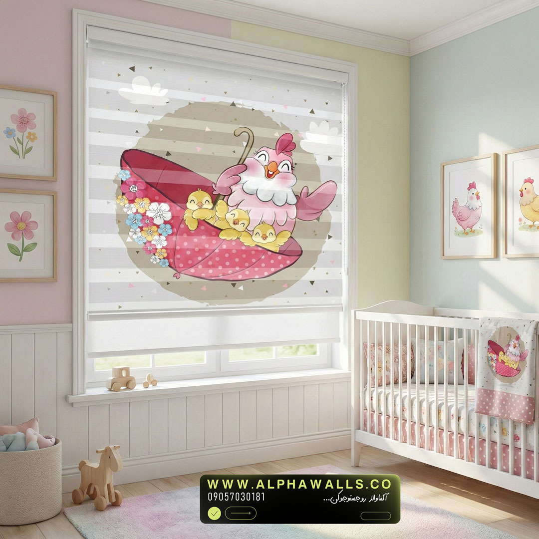 پرده زبرا کودک طرح مرغ مادر و جوجه