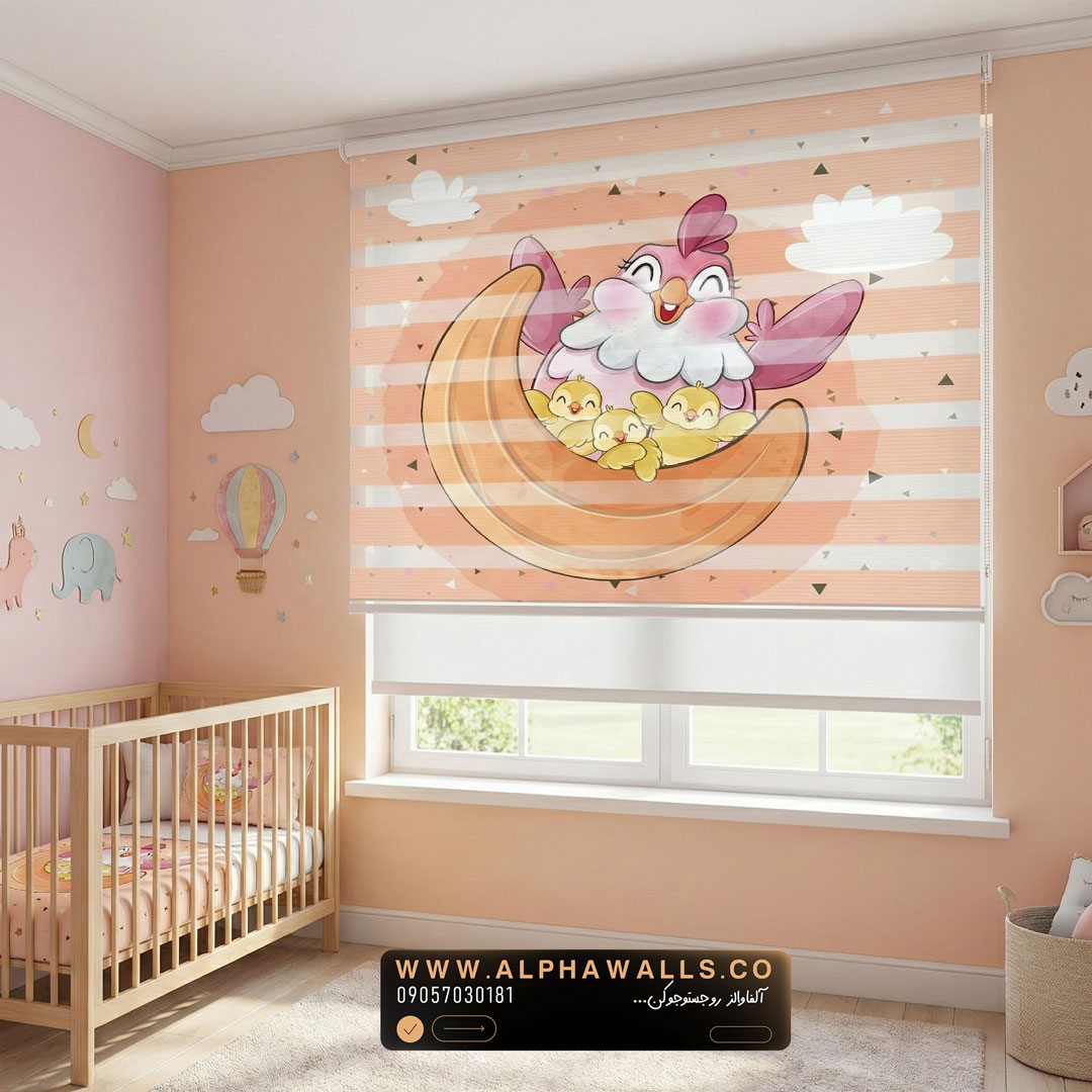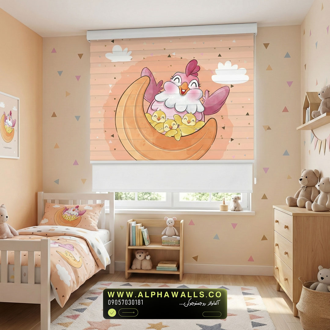 پرده زبرا کودک طرح مرغ مادر و جوجهها