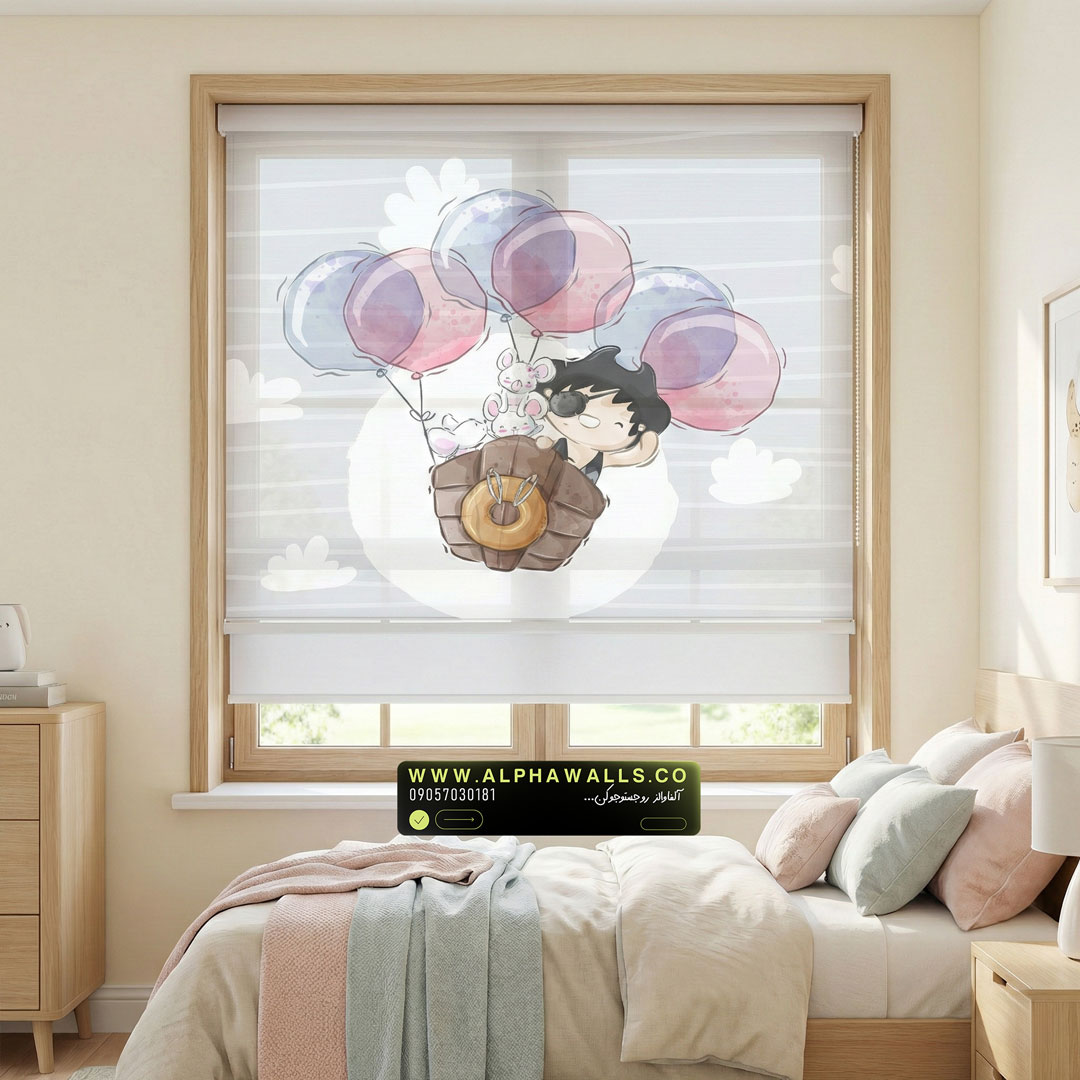 پرده زبرا کودک طرح بالنهای فانتزی با شخصیت کارتونی، فضایی سرشار از خیالپردازی، امنیت و آرامش ذهنی را برای کودک ایجاد میکند. تصویر شخصیت کودکانه در سبد بالنها، حس سفر، رویا و کشف دنیای جدید را در ذهن کودک فعال میسازد؛ بدون آنکه فضا شلوغ یا تحریککننده باشد. این ویژگی باعث میشود پرده هم برای اتاق خواب کودک و هم برای اتاق بازی یا استراحت انتخابی کاملاً هوشمندانه باشد.