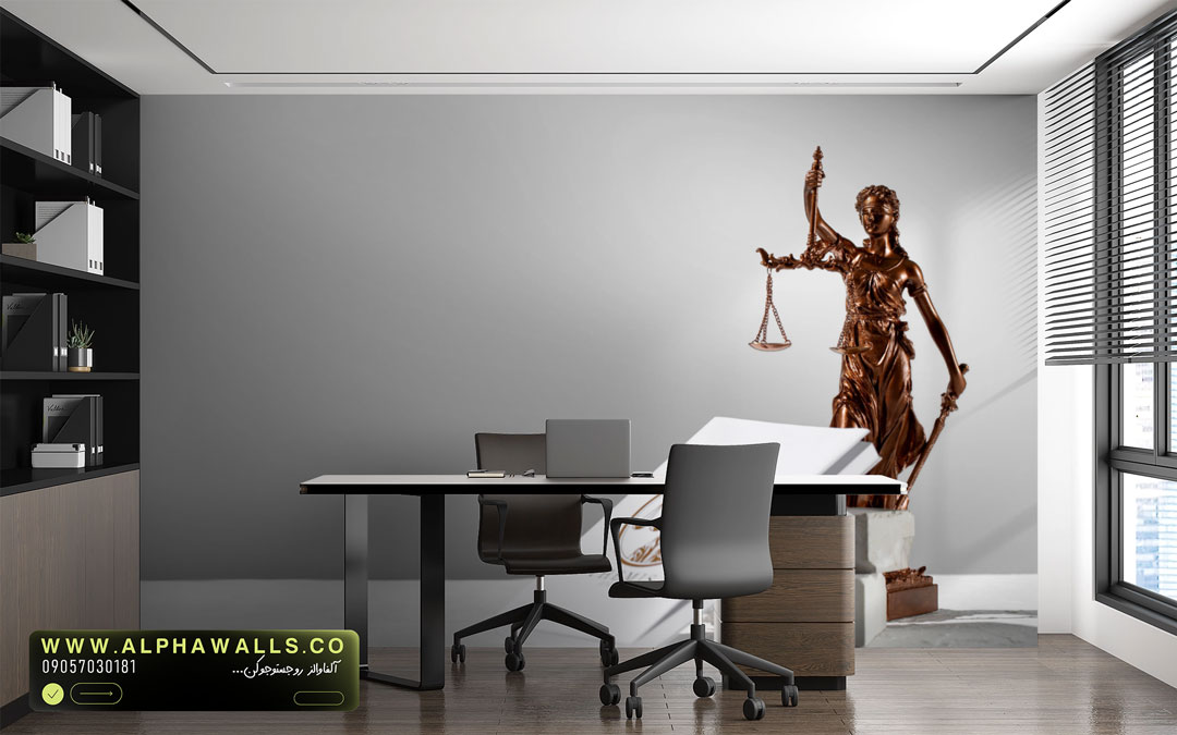 این پوستر دیواری با حضور مجسمه الهه عدالت در فضایی مینیمال و رسمی، یکی از حرفهایترین و معتبرترین طرحها برای دفاتر حقوقی، دفاتر وکالت، اتاق مدیران و فضاهای قرارداد است. ترکیب رنگی برنزی مجسمه با پسزمینه خاکستری، حالوهوایی از اقتدار، انصاف، ثبات و تصمیمگیری منطقی را در محیط ایجاد میکند.