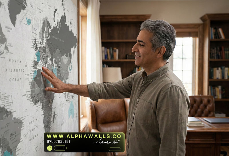 این بافت باعث میشود نقشه با دیوار یکی شود نه اینکه صرفاً روی آن بنشیند.