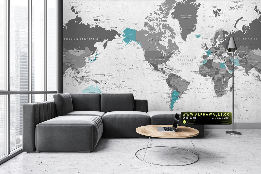 پوستر دیواری نقشه جهان مینیمال طوسی